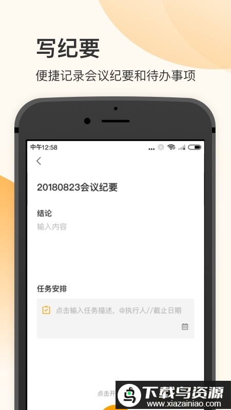 快速记纪要:支持以文字、图片、表格、附件等多种形式记录会议内容;