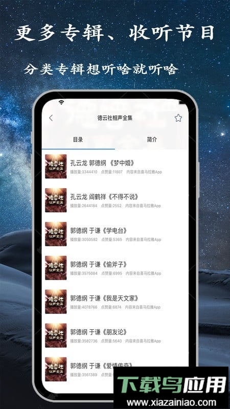 1、软件支持收听小说、相声、音乐、戏曲、故事、历史及英语等多种内容,资源库庞大;