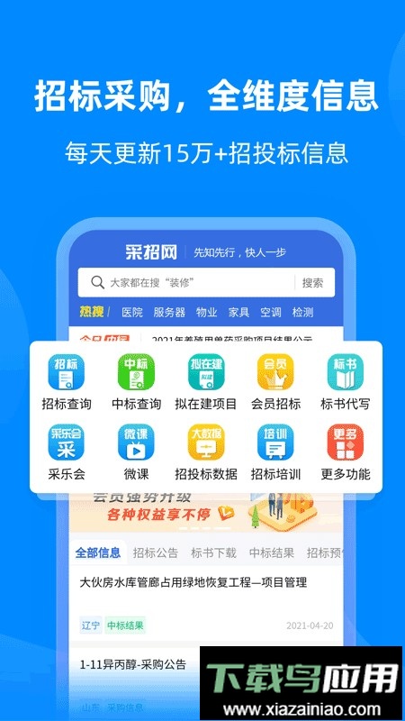 1. 提供招标搜索、项目查询、VIP专属项目、项目动态跟踪以及热门项目推荐等服务;