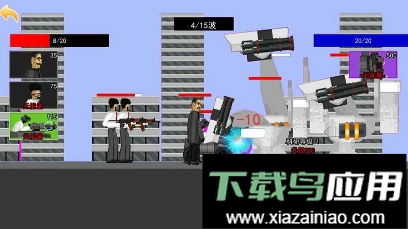 采用复古像素美术风格,营造出充满科幻感的未来都市战场,体验丰富趣味内容;