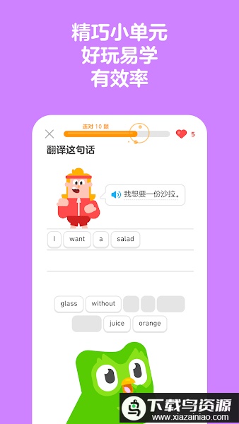 想要轻松掌握一门外语吗?Duolingo官方app英文版为你打造了一个生动有趣的学习环境,让语言进步变得简单又充满乐趣。加入全球五亿用户的行列,从这里开始你的多语言探索之路,感兴趣的朋友可以直接在本站下载体验。