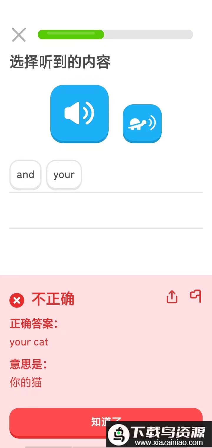 4、如果回答错误,系统会显示正确答案以供参考。