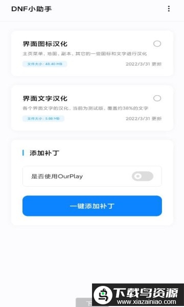 支持一键添加汉化补丁,同时提供ourplay运行环境的适配选项。