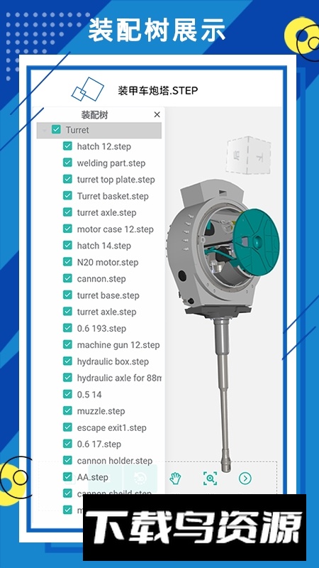 1. 轻量化三维模型浏览:无需安装复杂的CAD软件,即可在手机上快速查看JT、UG、CATIA、Pro/E等格式的三维模型;支持查看装配结构、进行精确测量、控制零件以及模型分解等可视化功能。