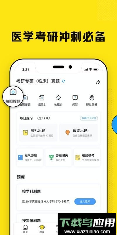 3. 备考各类医考时,如临床执业医师、助理医师、医学考研、护考、药师或主治考试等,可使用刷题功能;平台提供近二十年的真题供在线练习,支持拍照搜题快速获取答案,并能与数万考生一起讨论问题;