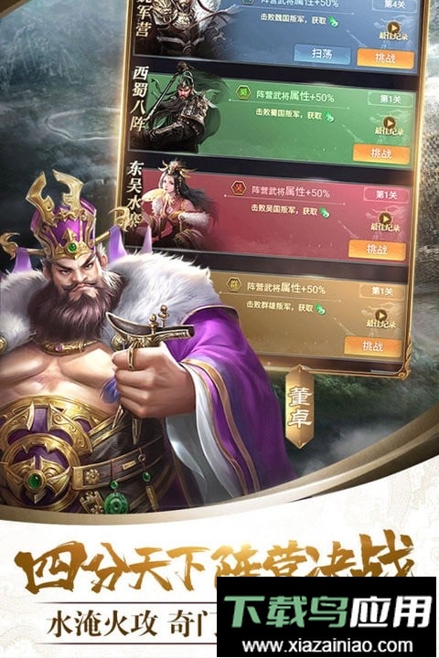 每位武将拥有专属技能,八种携带不同增益效果的战阵,助你打造无敌军团。