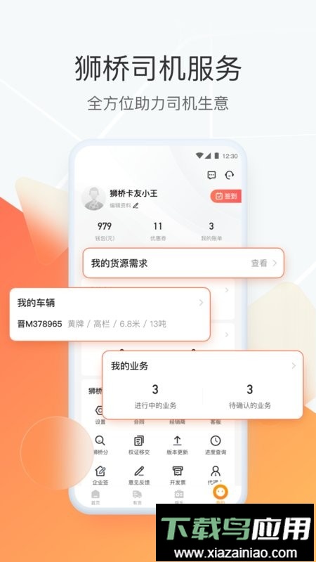 该应用为狮桥司机整合了线上还款、物流配货及休闲电台等功能,操作更快捷,使用更便利,致力于构建一个全面的商用车综合服务平台。