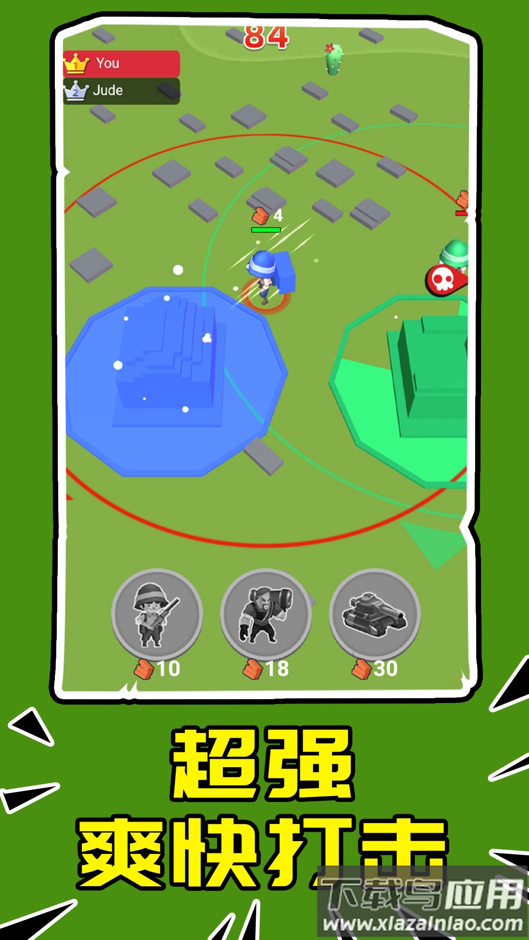 这是一款以地盘争夺为核心的休闲战地游戏。