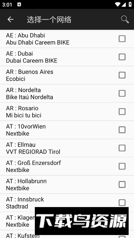 2.启动应用后,你需要添加一个单车网络以进行后续操作。