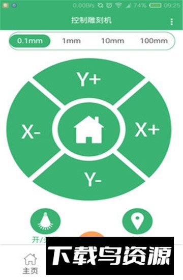 使用前请确保手机与雕刻机连接在同一无线网络下,在应用中输入设备IP地址即可成功连接,之后便可执行移动轴点、开关照明、位置校准及文件传输雕刻等各项操作。