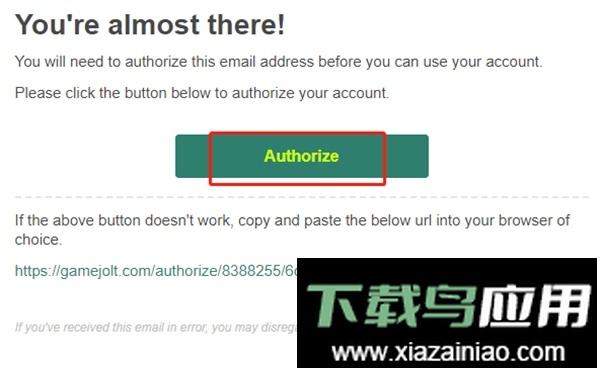 3、登录你的邮箱,找到验证邮件并点击其中的Authorize链接完成验证;