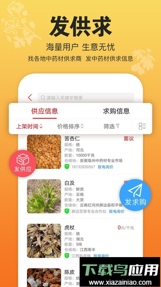 2、通过药材社区功能,帮助用户寻找和联系所需药材的供应方;