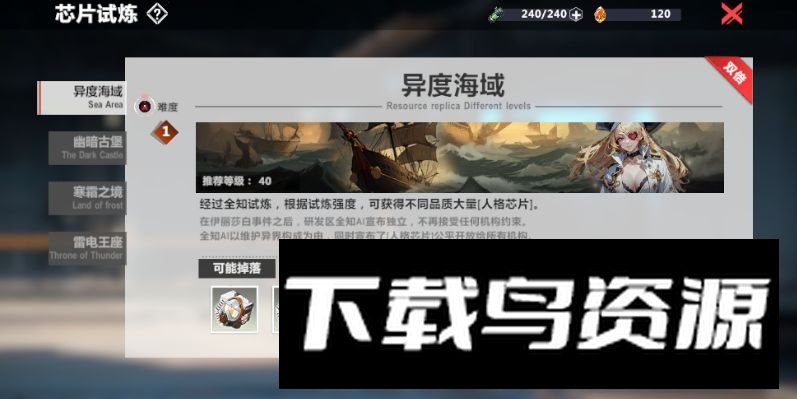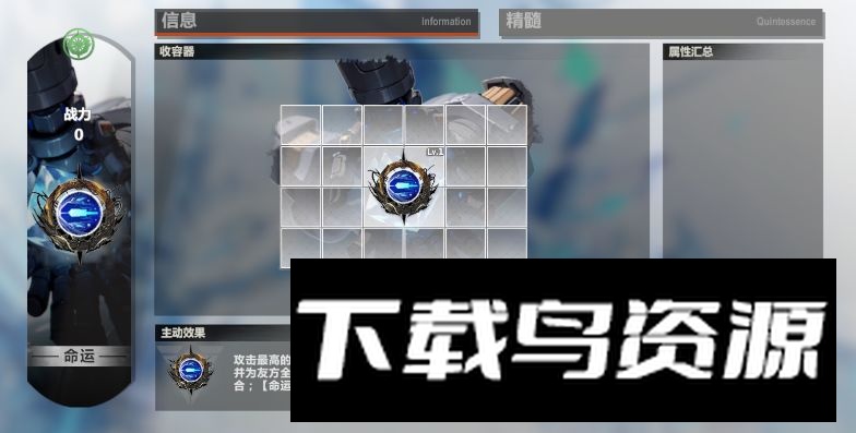 10、芯片系统:通关【巡旅02】解锁芯片功能,【巡旅09】后开放芯片试炼以大量获取。芯片包含主属性与至多三条副属性,不同部位主属性类型有固定与随机之分。