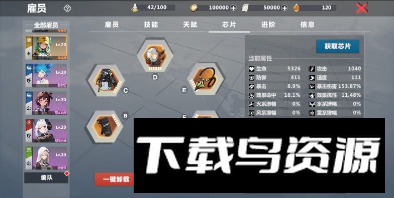 4、阵容组建建议:前期建议优先抽取一名橙色主C雇员,例如艾拉瑞丽或玛娜,并搭配辅助、坦克、治疗角色组成队伍。若能组建四橙阵容替换紫色雇员,推关体验会更加顺畅。