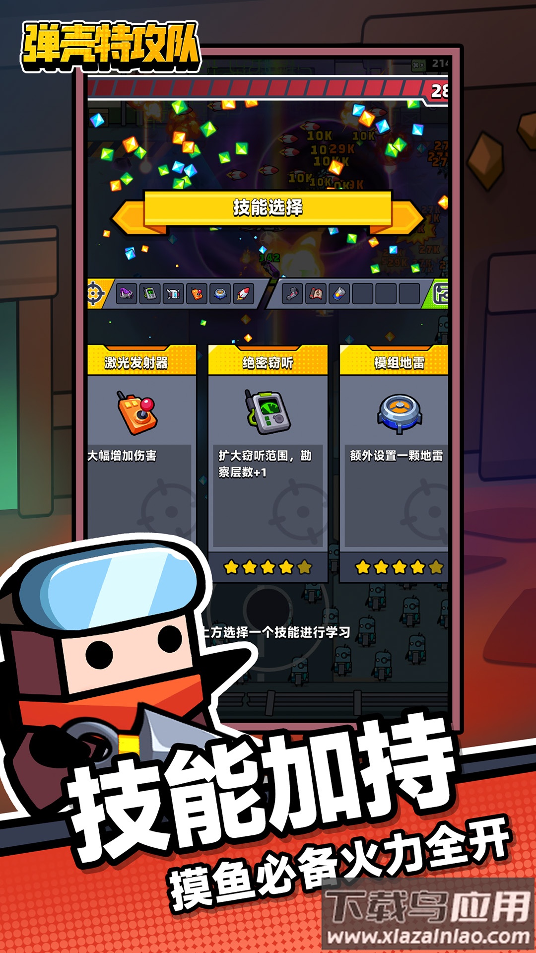 这款游戏巧妙融合了Roguelike的随机乐趣、求生玩法的紧张刺激以及割草清屏的爽快感。