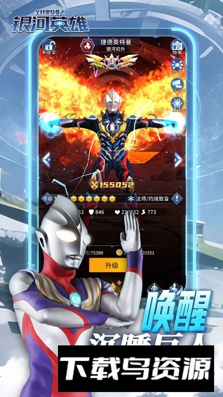 1.角色养成:通过升级与进化不断提升角色属性,让你的奥特曼越战越强;