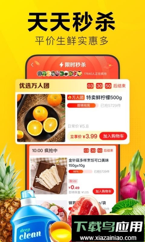 【精选爆品,新鲜实惠】平台为家庭用户精选高性价比商品,包括蔬菜、水果、肉禽蛋、零食酒饮、家居厨卫、速食冻品及粮油调味等,满足三餐食材需要;