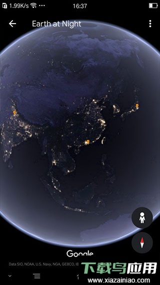 6、在此模式下,你可以随意浏览地球上任何区域的夜间灯光景象。