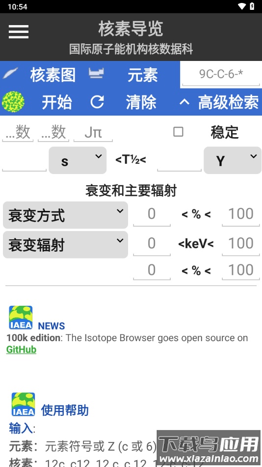 该应用收录了国际原子能机构核数据科提供的权威资料,包含四千余种核素及同质异能态的详细特征参数。
