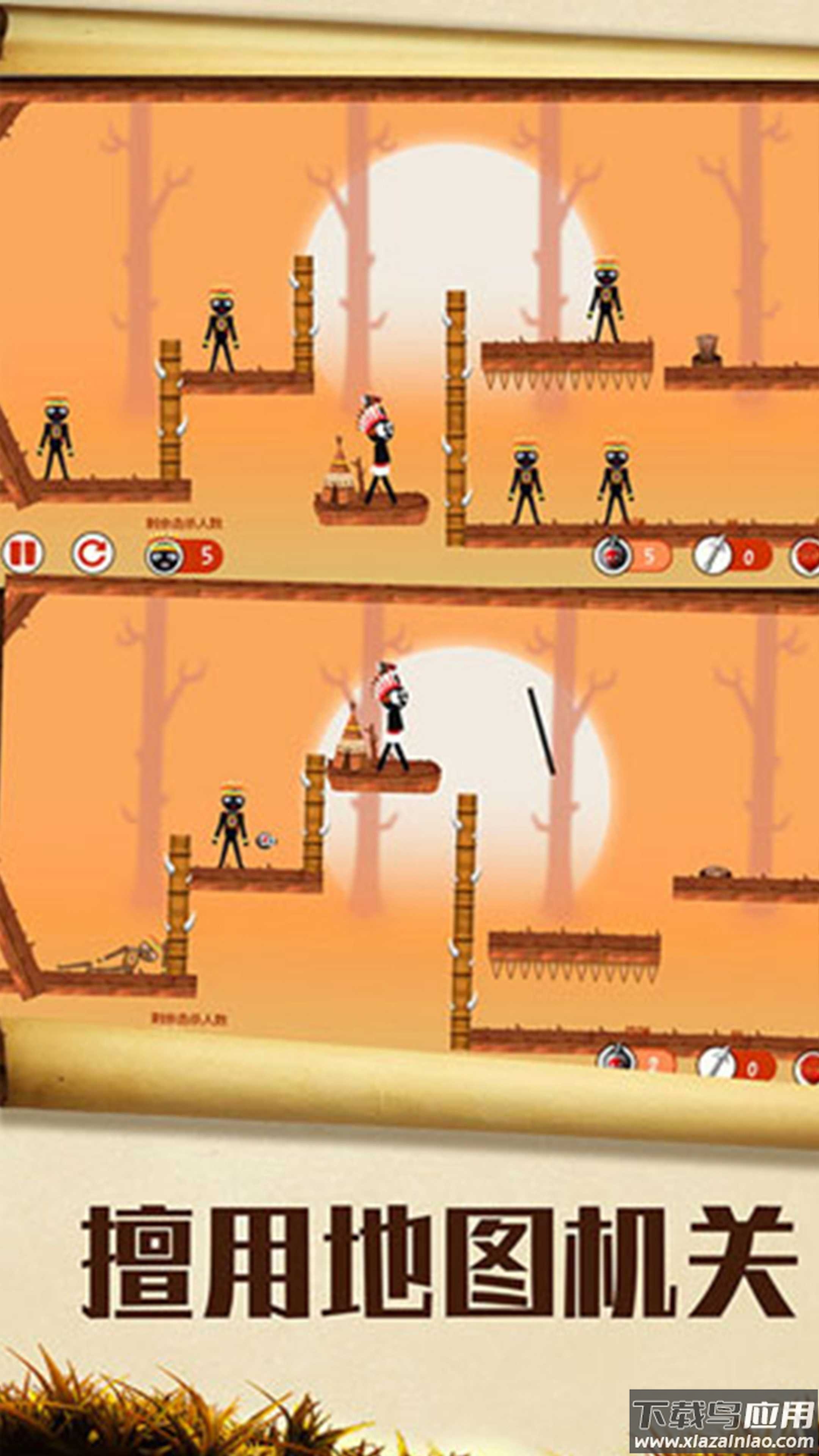 游戏围绕火柴人展开,提供了多样的冒险体验。角色设计独具风格,玩家需要仔细瞄准,找准射击角度。地图场景十分开阔,挑战你的思考能力。这是一款闯关游戏,核心在于灵活使用弓箭、气球等各类道具,以达成关卡要求。