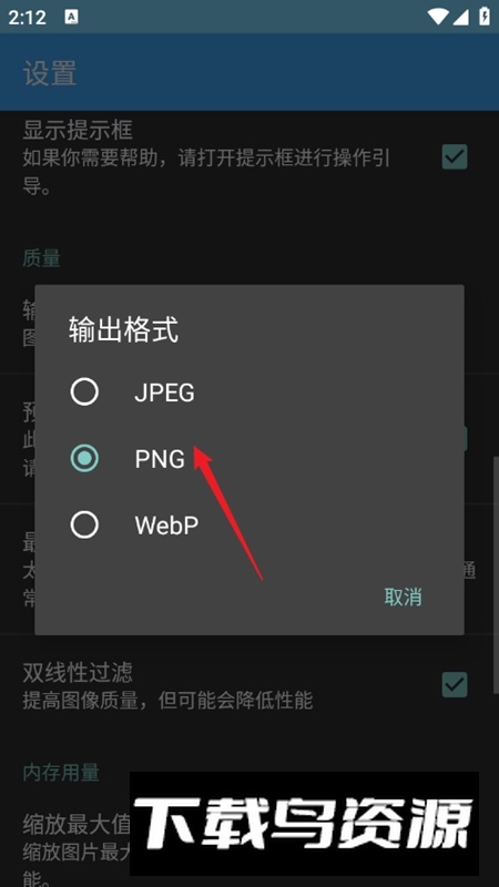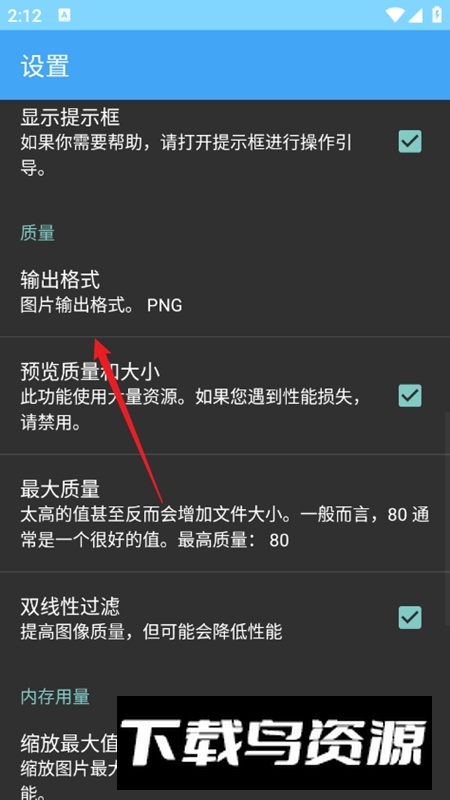 3.向下滑动找到输出格式选项,即可选择需要的图片保存格式。