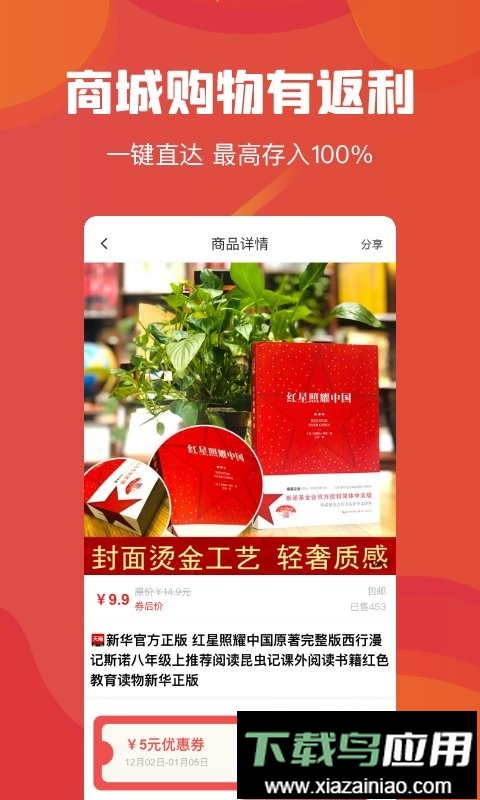 点击下单返利可在淘宝收货后获得返利,通过分享功能邀请好友购买还可赚取额外收益。