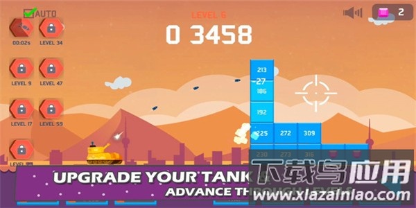 这是一款轻松有趣的放置类坦克闯关游戏,玩家可以操控多种坦克进行攻击。每辆坦克具备专属技能,你需要熟悉它们的发射方式,瞄准场景中的方块进行射击。只有将方块全部清除,才能顺利进入下一关。