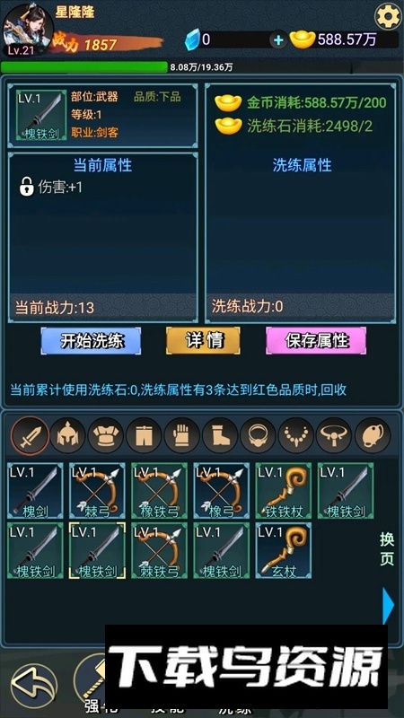 5.洗练功能用于重置装备副属性,可根据前述属性优先级进行调整;