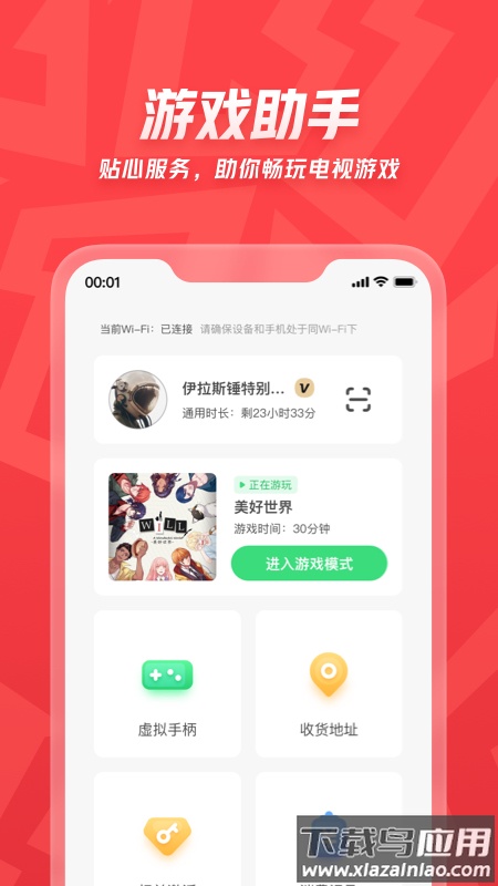 这是一款专为咖哒电视游戏玩家设计的辅助工具。通过手机连接电视,即可将手机变为游戏手柄;游戏中碰到难题,可以迅速查找解决方法;致力于成为用户玩转电视游戏的贴心帮手。咖哒手机App主要为用户在电视上畅玩咖哒应用内的游戏提供支持与服务。