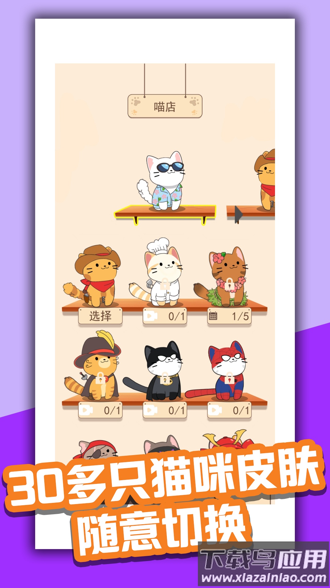 6. 通过赚取的金币,能够解锁和购买更多不同外观的可爱猫咪。