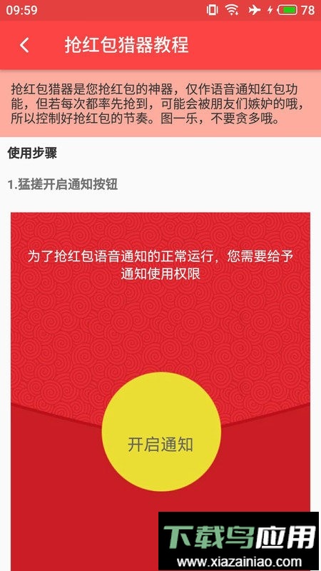 用户需要开启系统的通知权限,之后当微信群或好友发送红包,或者讨论你设置的关键词时,应用便会用语音进行播报告知。
