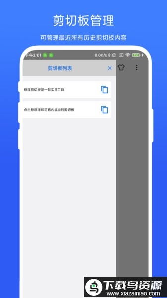 1、通过悬浮窗口实时展示剪切板,让各项管理功能触手可及;