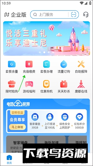 电信云宽带app官方手机版是上海电信用户专属的综合服务应用,它集成了充值缴费、业务办理与上门服务等多项实用功能,用户还能一键切换个人版与企业版界面,操作流畅便捷,日常使用十分顺手,喜欢的不妨在本站下载。
