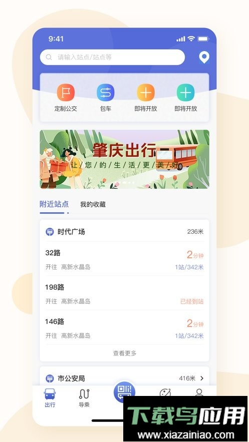 附近站点:自动定位用户当前所在位置,展示周边站点及途经线路信息;