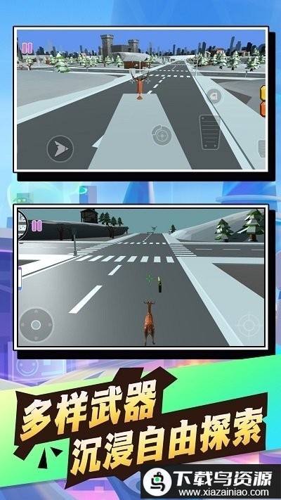 1.小心操控小鹿的行动,避开各种攻击,在城市中自由探索与闯关;