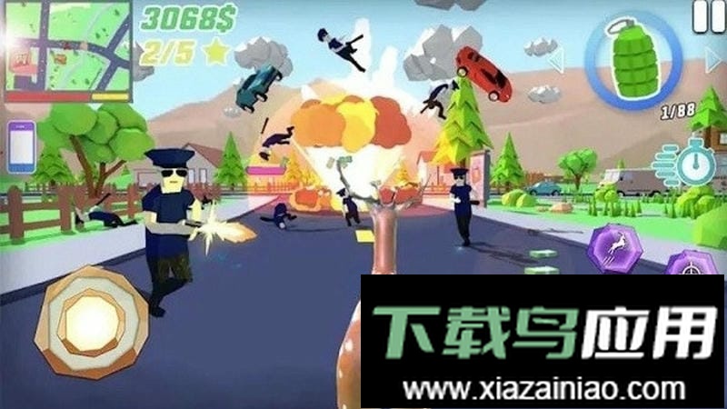 游戏采用精美的3D卡通画面,呈现生动的滨海城市景观;两种核心模式可供选择,自由度极高。场景中的各类道具都能互动使用,过程刺激解压;需要注意的是,你在尽情破坏的同时,还得灵巧躲开警察的追捕与街道上来往的车辆。
