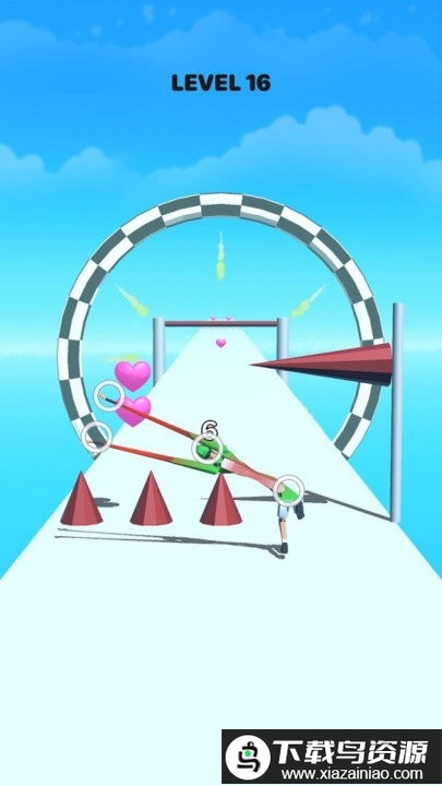 赛道设计环环相扣,难度各有不同;场景丰富,赛道的类型也十分多样。你的任务是指挥角色不断向前跑酷,运用各种操作越过所有障碍才能通关,这非常考验手指的操控能力与反应速度。