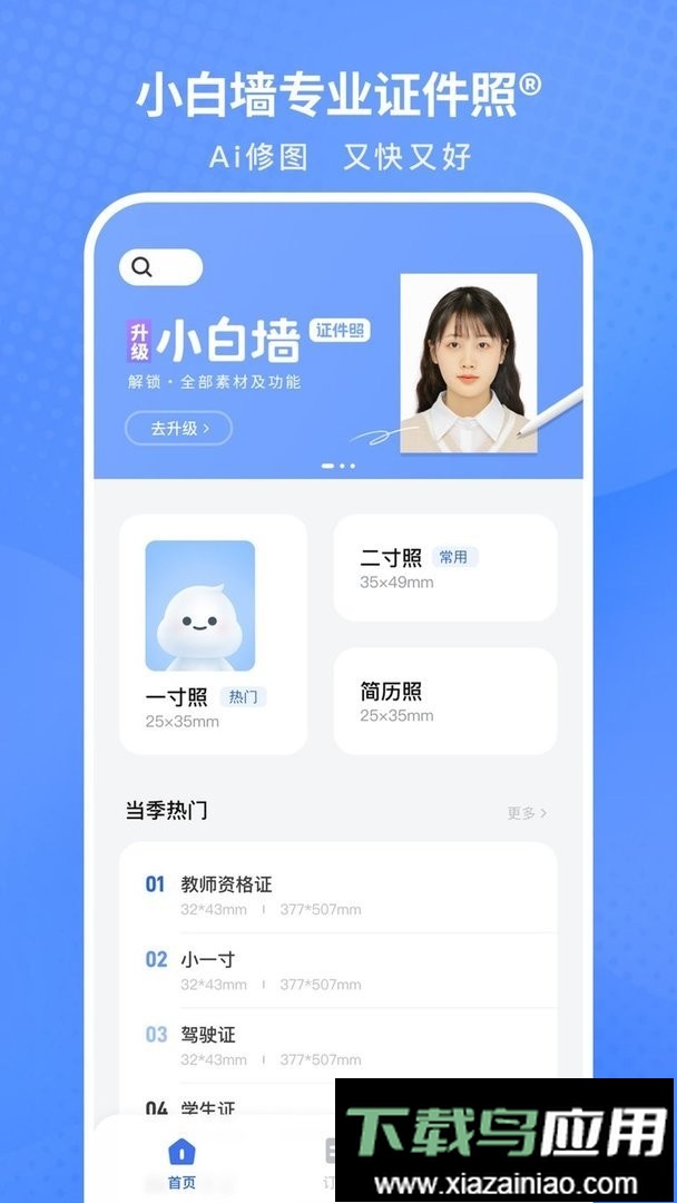 小白墙证件照免费版是一款功能全面的证件照编辑工具,它能协助用户便捷地美化与调整个人证件照,确保照片符合各类官方规格要求。这款掌上应用让证件照制作变得轻松高效,为用户提供了专业且易用的编辑体验。