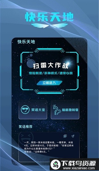 这里是一个充满趣味的快乐天地。你可以畅玩紧张刺激的扫雷游戏,多种新奇模式等待你的探索;也能随时翻阅持续更新的搞笑笑话,让心情瞬间轻松。应用里还准备了锻炼思维的脑筋急转弯,以及热门游戏的详细图文攻略,帮助你在虚拟世界中顺利闯关。看图猜剧等互动内容也同样精彩。