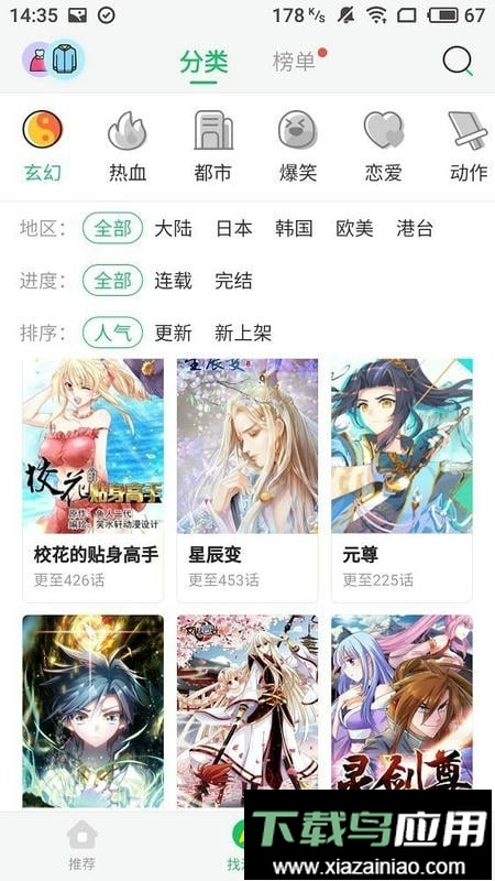 1.每日会推送相关漫画推荐,不同分类下设有独立的排行榜单;