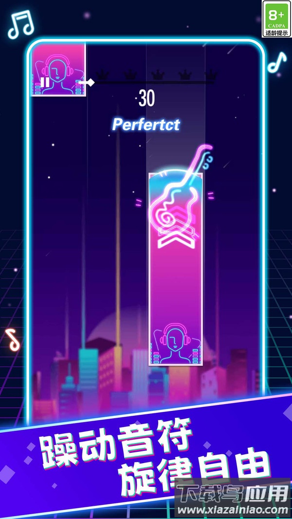 3、当音符从屏幕上方落下时,看准时机快速点击,动作稍慢就会错过,非常考验反应。