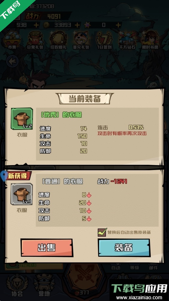 2、战胜怪物后能获得各类装备,这些装备可直接穿戴或出售换取资源。