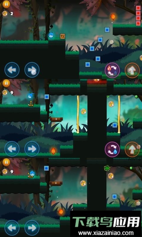 这是一款需要双人配合的趣味闯关游戏,玩家将分别操控冰人与火人两位角色。游戏中布满了各种精巧的机关与危险陷阱,许多挑战必须依靠两人的默契协作才能克服。你需要通过屏幕右下的按键来控制角色移动,仔细观察环境,合理规划两位角色的行进路线,引领他们安全抵达终点。