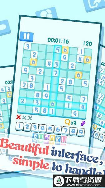 这款游戏画面精美,规则简单易懂,玩家能快速掌握。你需要依据9×9盘面上已有的数字,推算出所有空白格子的数字,确保每一行、每一列以及每一个粗线宫内的数字都包含1至9且不重复。这个过程充满逻辑与推理的挑战,对数字谜题爱好者而言堪称一场思维盛宴。