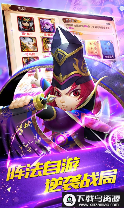招募来自三国时代的著名将领,率领你的军队征战四方;运用他们强大的专属技能,为你开辟胜利的道路。