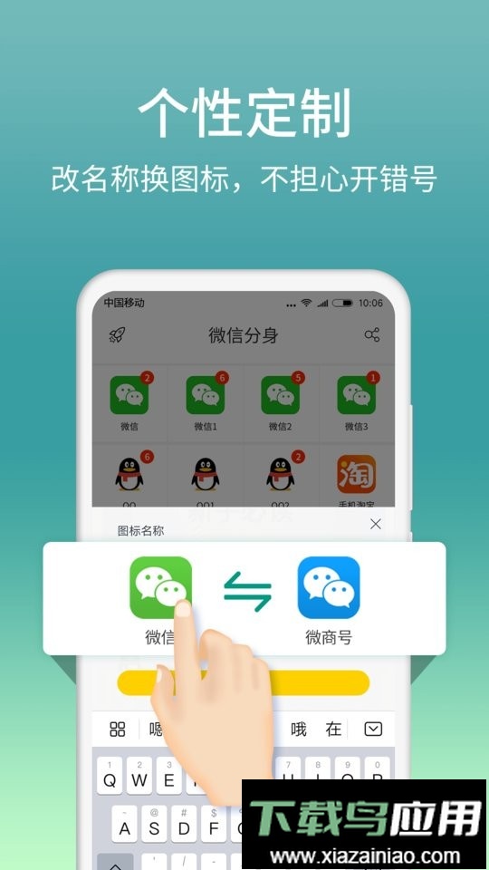 3.提供分身独立桌面,方便用户快速开启大小账号;开启微信多开消息通知后重要信息不会遗漏,同时可修改分身图标与名称,随心定制分身应用,更好地保护个人隐私。