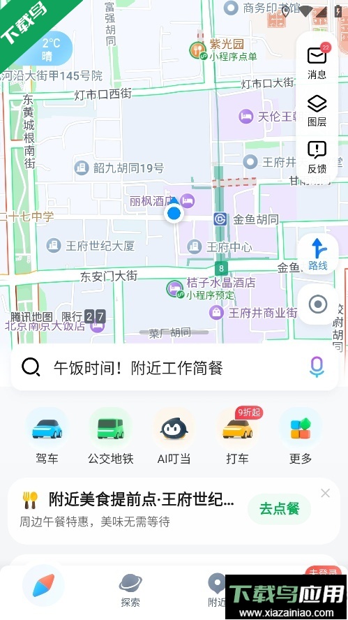 腾讯地图是腾讯公司推出的精准智能出行导航应用,凭借全面功能与优质体验,成为用户信赖的出行伙伴,支持全国360多个城市的车道级导航,定位精度达到亚米级,在复杂路口、高速出口等场景提供清晰车道指引,避免行驶错误,结合智能动态视野调整功能,可提前预判变道需求,使导航体验更加沉浸,提供驾车、打车、公交、步行、骑行等出行方式的智能规划方案,依托大数据与算法能力,实时预测路况与耗时,推荐最优路线并动态躲避拥堵,覆盖主要机场、火车站及主流商场,帮助用户在室内环境中快速定位,轻松找到目标地点,界面设计简洁直观,交互逻辑流畅,降低了用户学习成本,提升了使用舒适度。