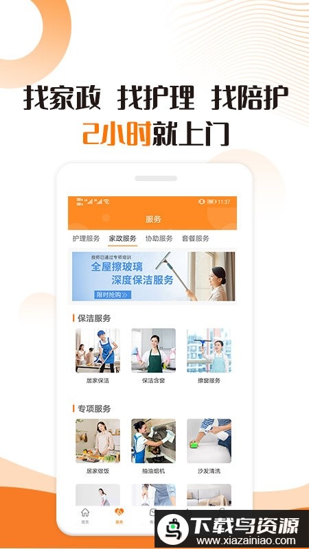 3. 软件设有协助服务、护理服务及家政服务等板块,方便用户寻找家政、护理和日常陪护资源。