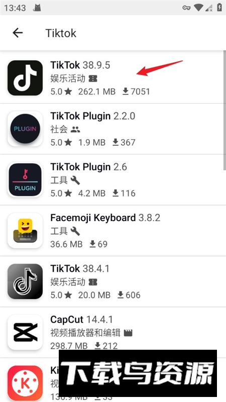 4、搜索结果页面会展示大量与Tiktok相关的应用资源;