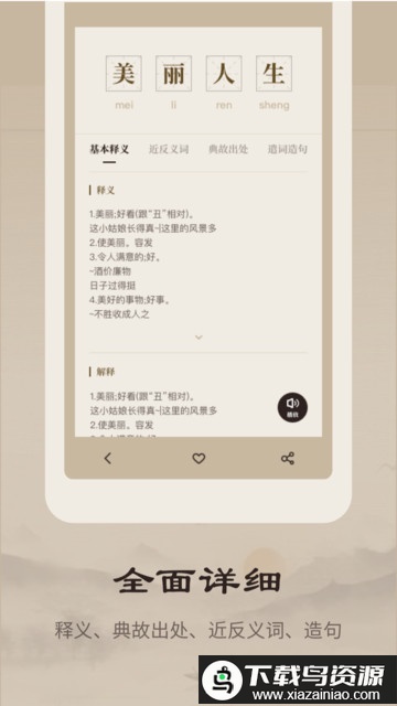 该版本运行流畅,操作界面设计贴心;支持在WiFi环境下自动更新离线词库,软件内无广告干扰。词典提供拼音检索功能,并展示同义词与反义词,助力用户拓展词汇关联,加深记忆。
